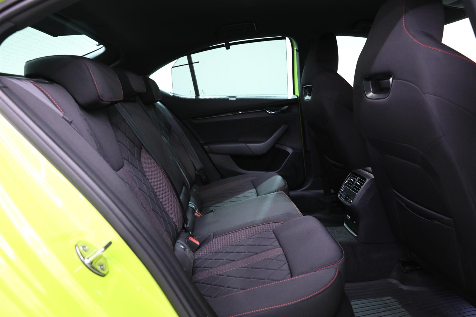 • - Siyah Kumaş, Kırmızı Dikiş Detaylı Baklava Desenli Spor Koltuklar